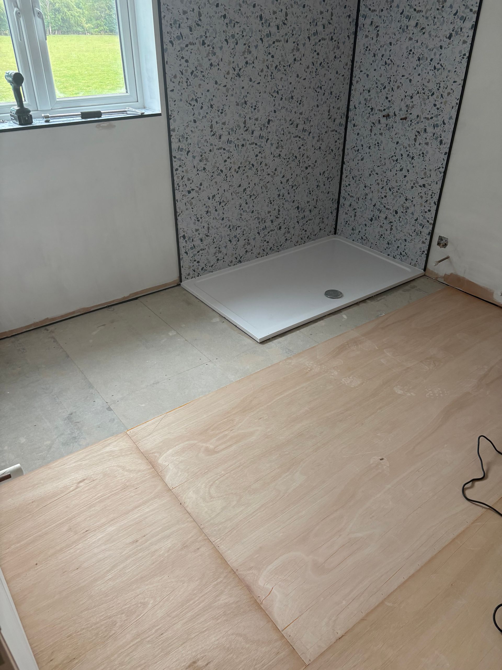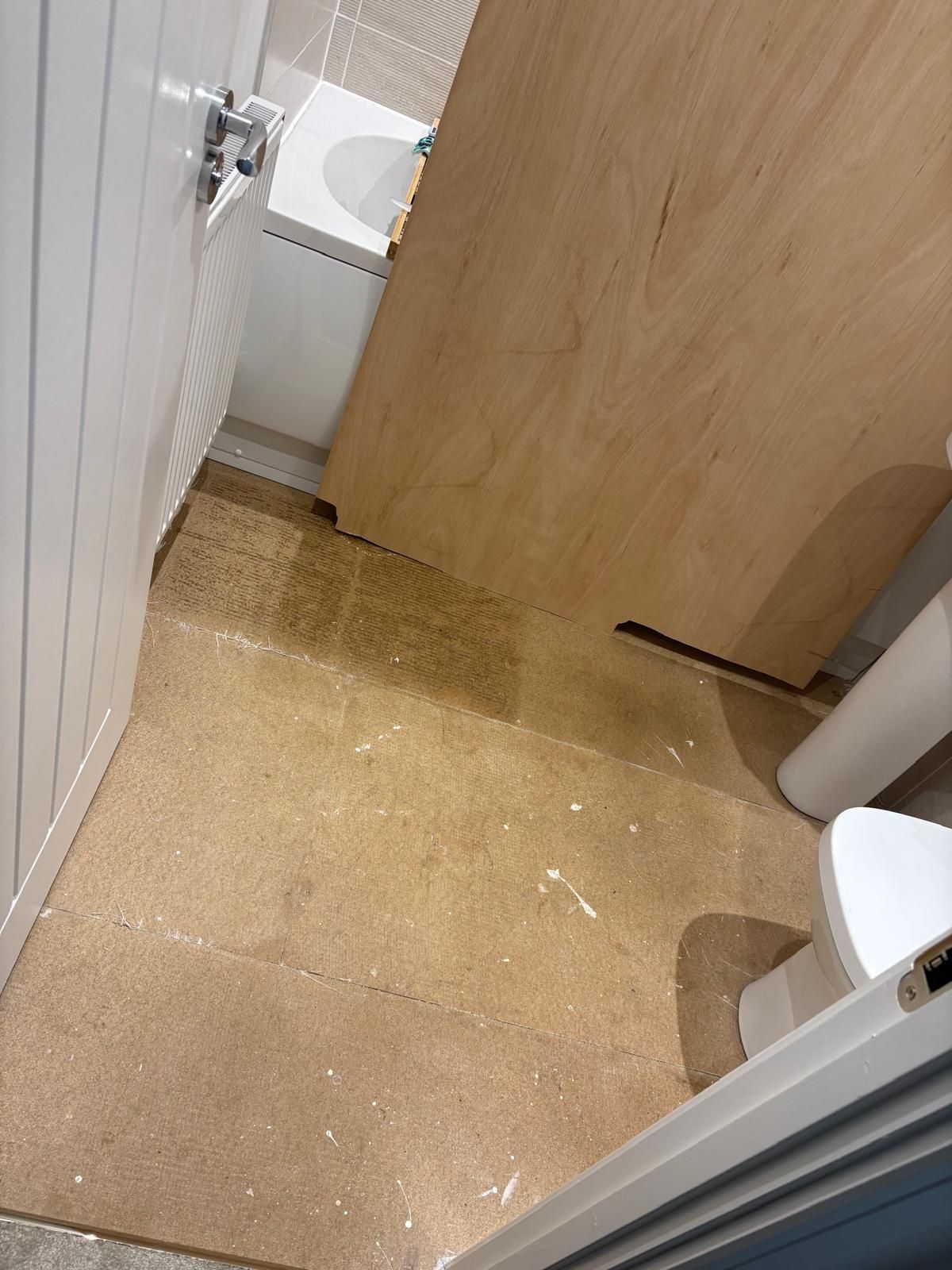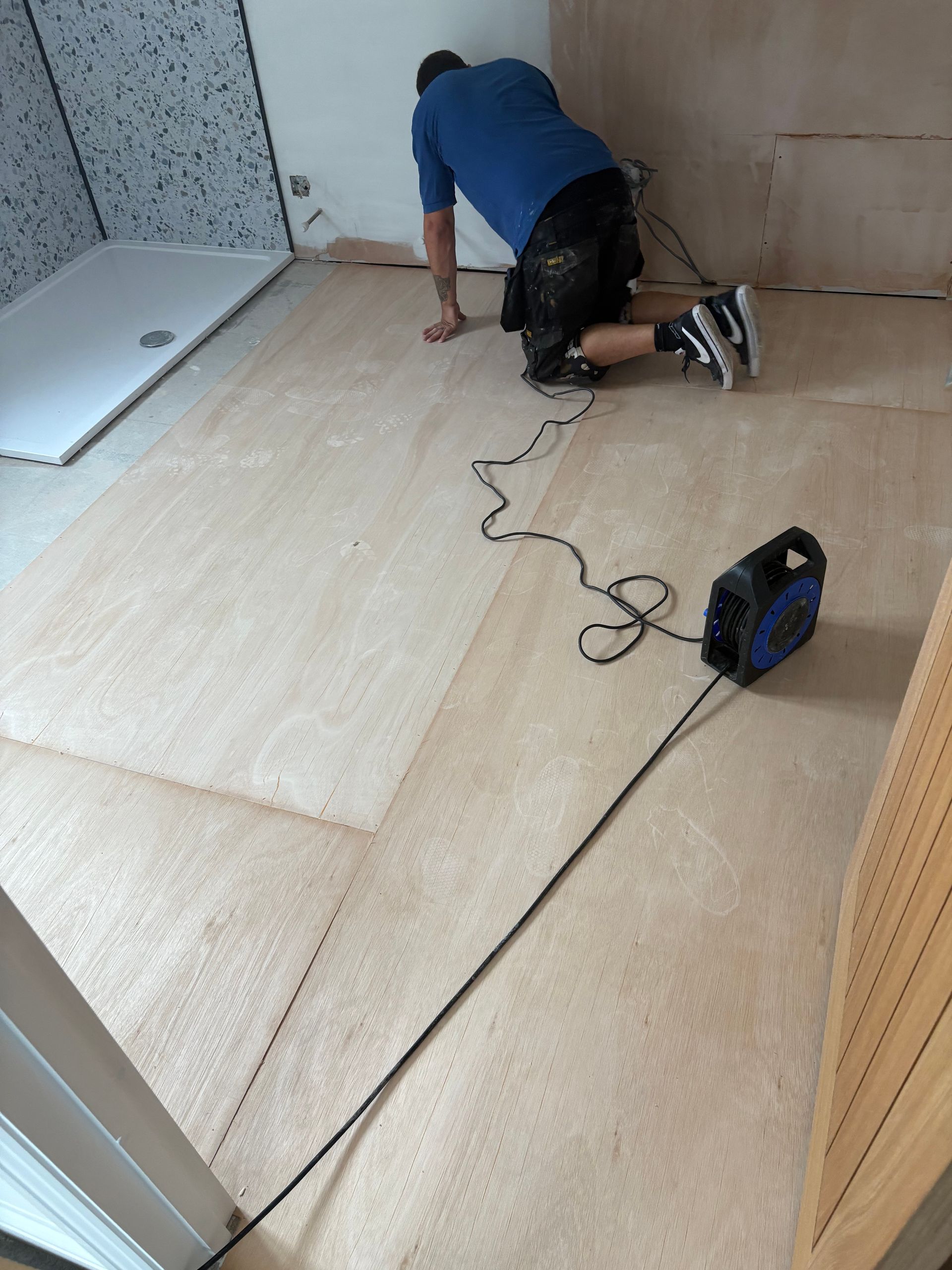 Plywood to chipboard subfloor to smooth areas ready for new floor covering. This has had a feather finish to the joints ready for installation.