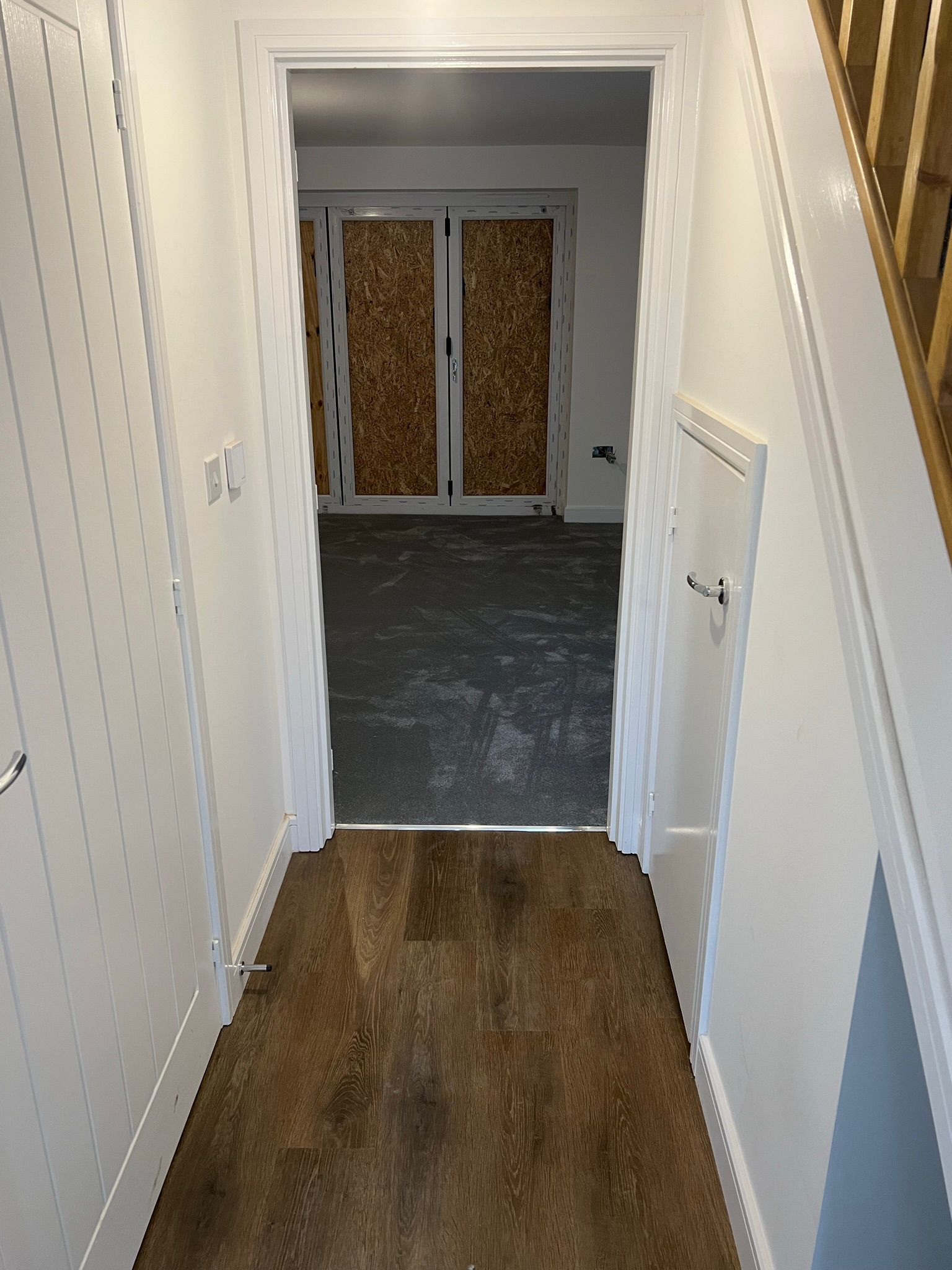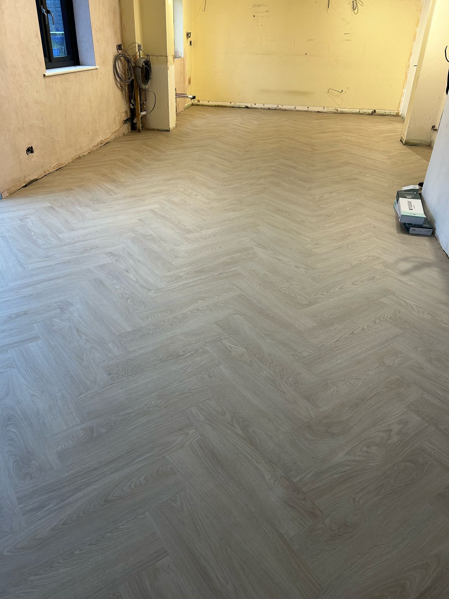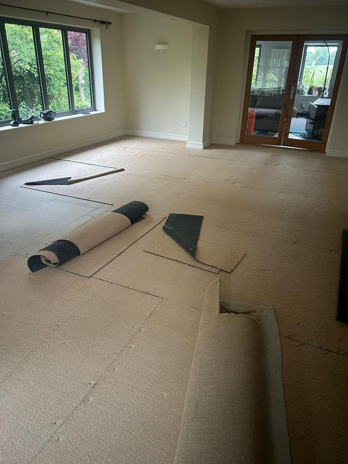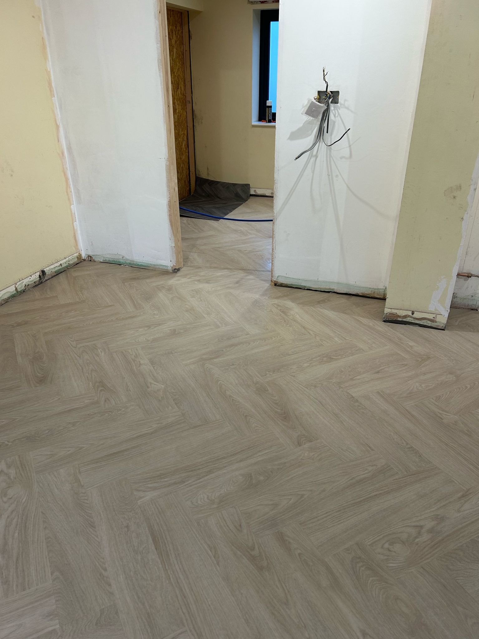 Plywood to chipboard subfloor to smooth areas ready for new floor covering. This has had a feather finish to the joints ready for installation.