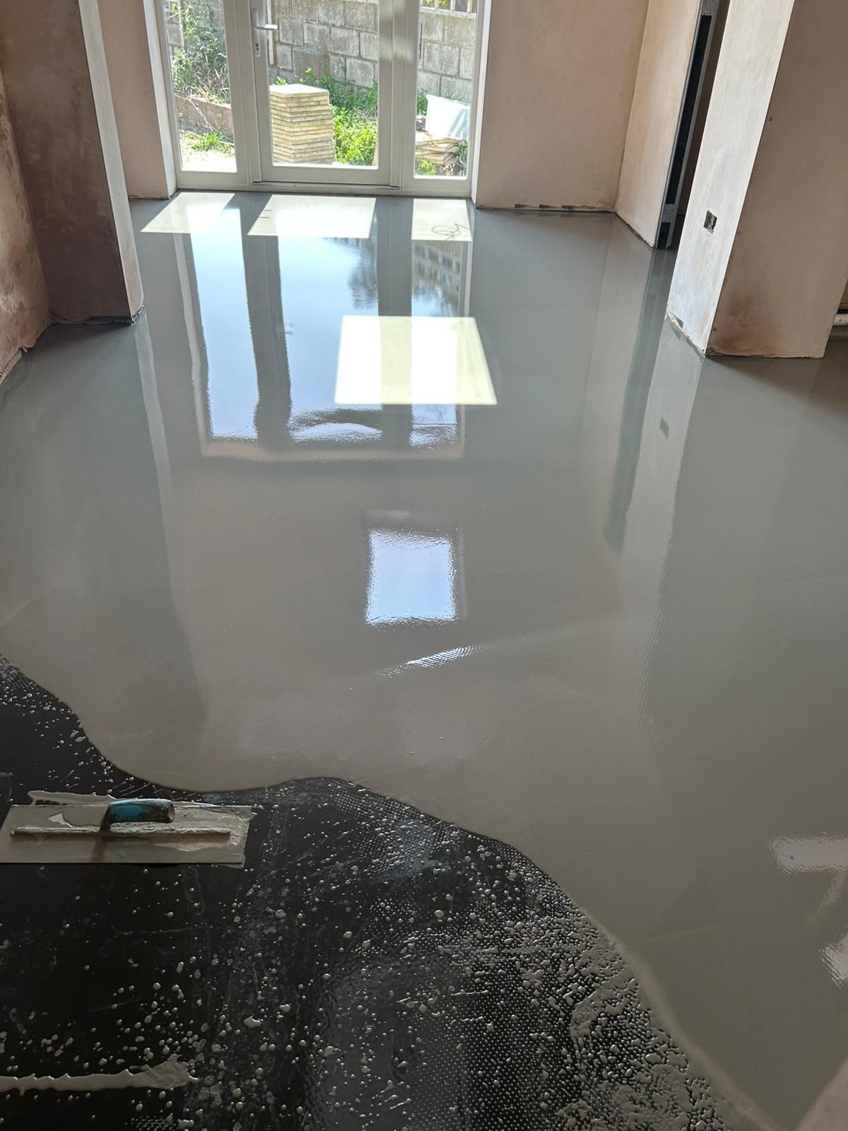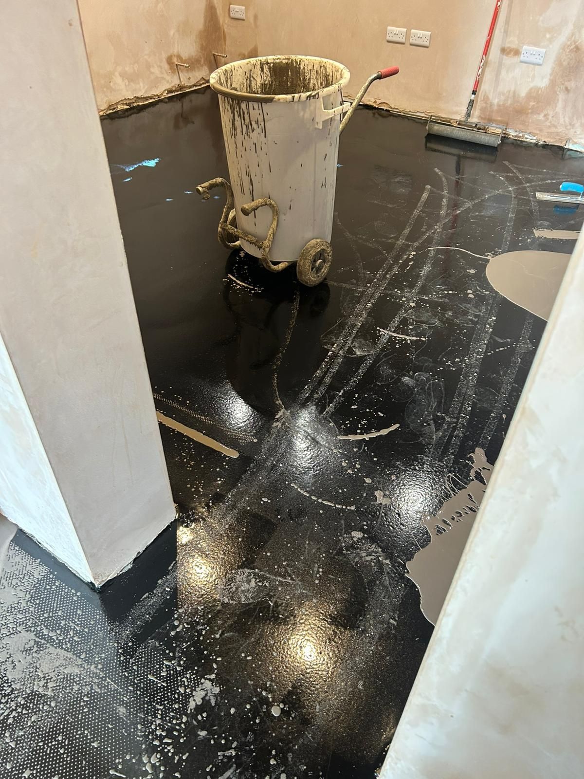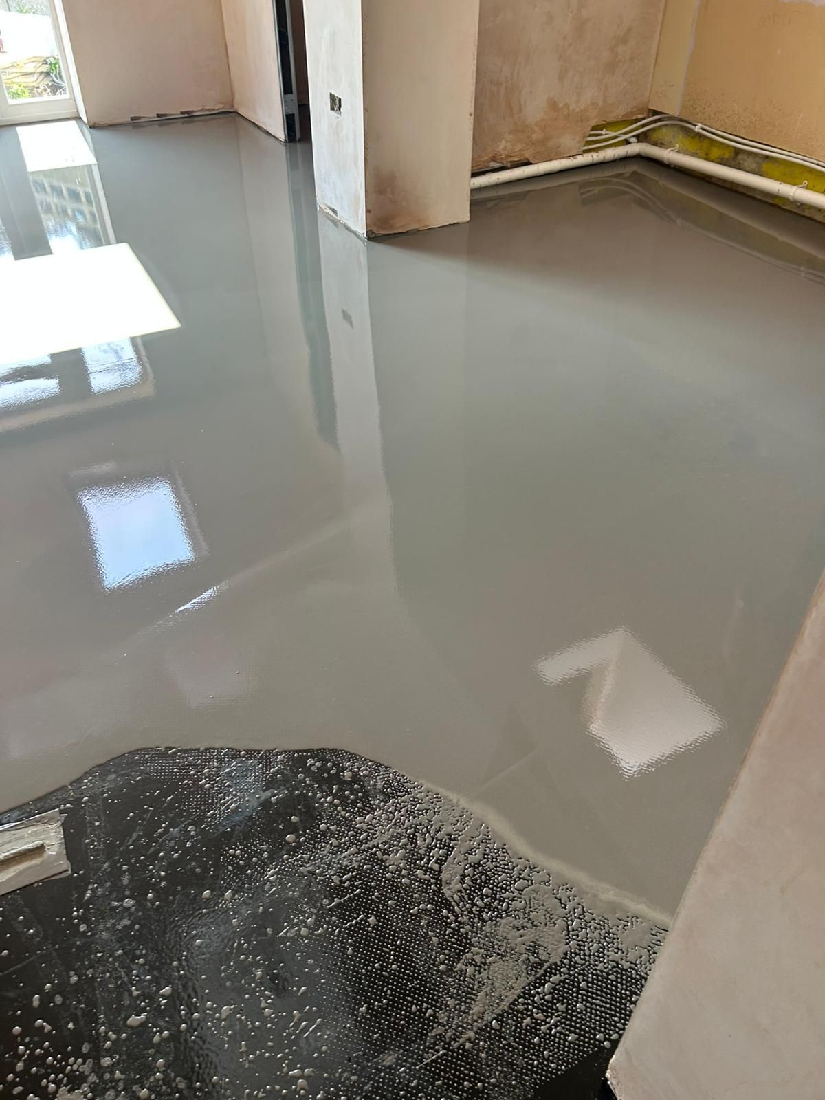 Latexing over dpm which smooths the subfllor ready for a new floor covering