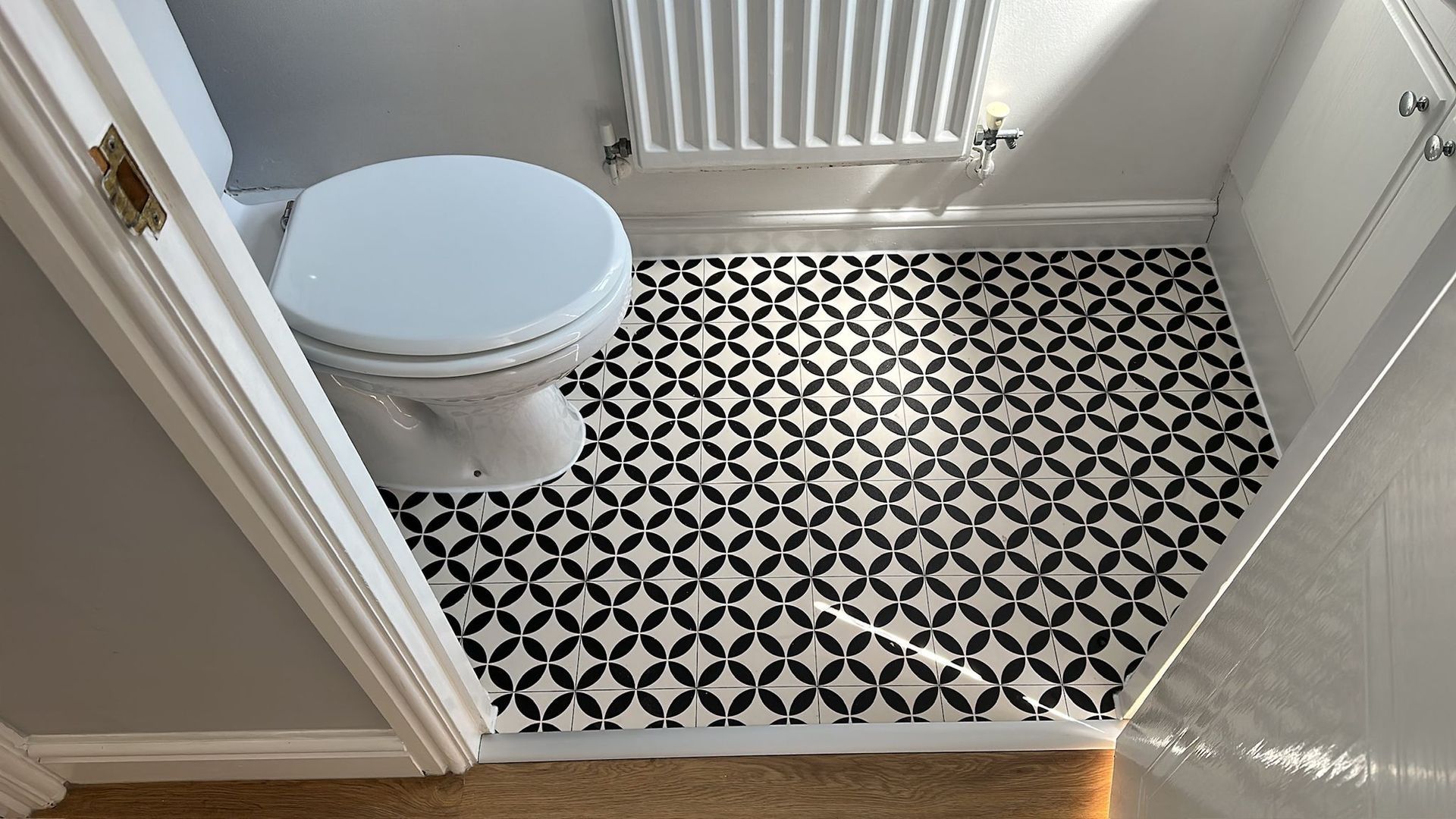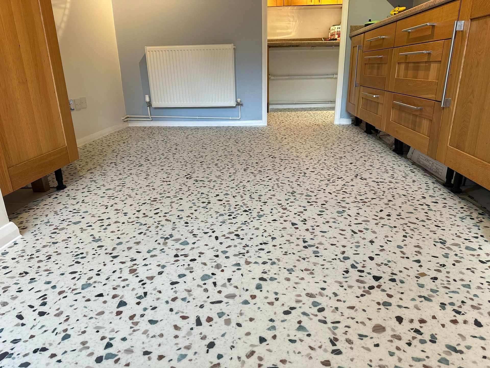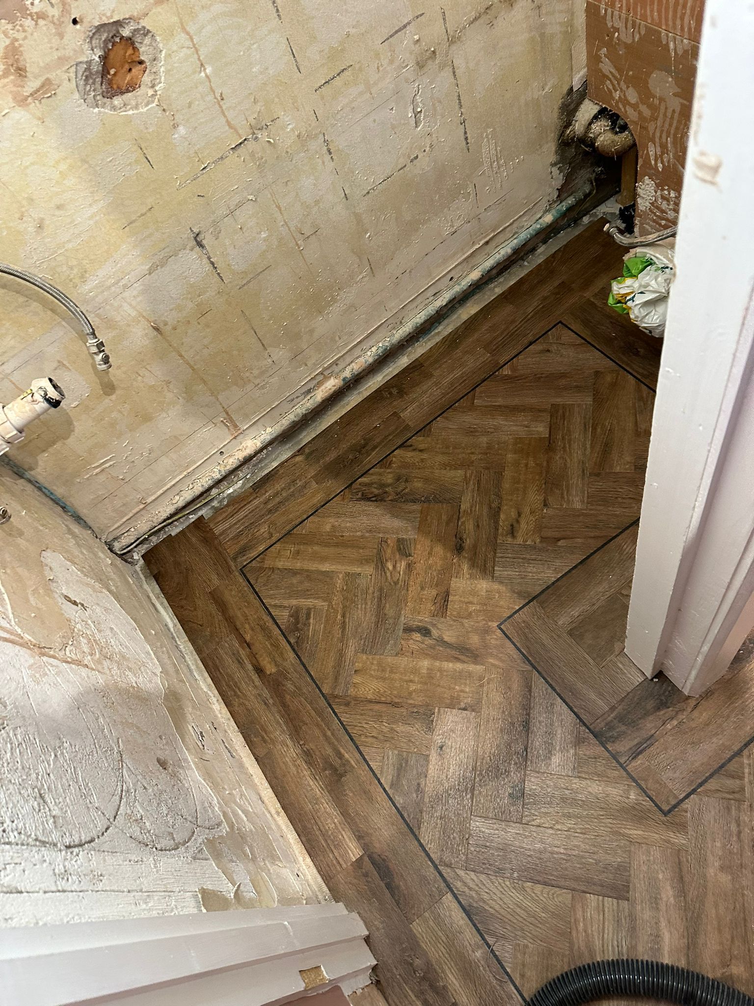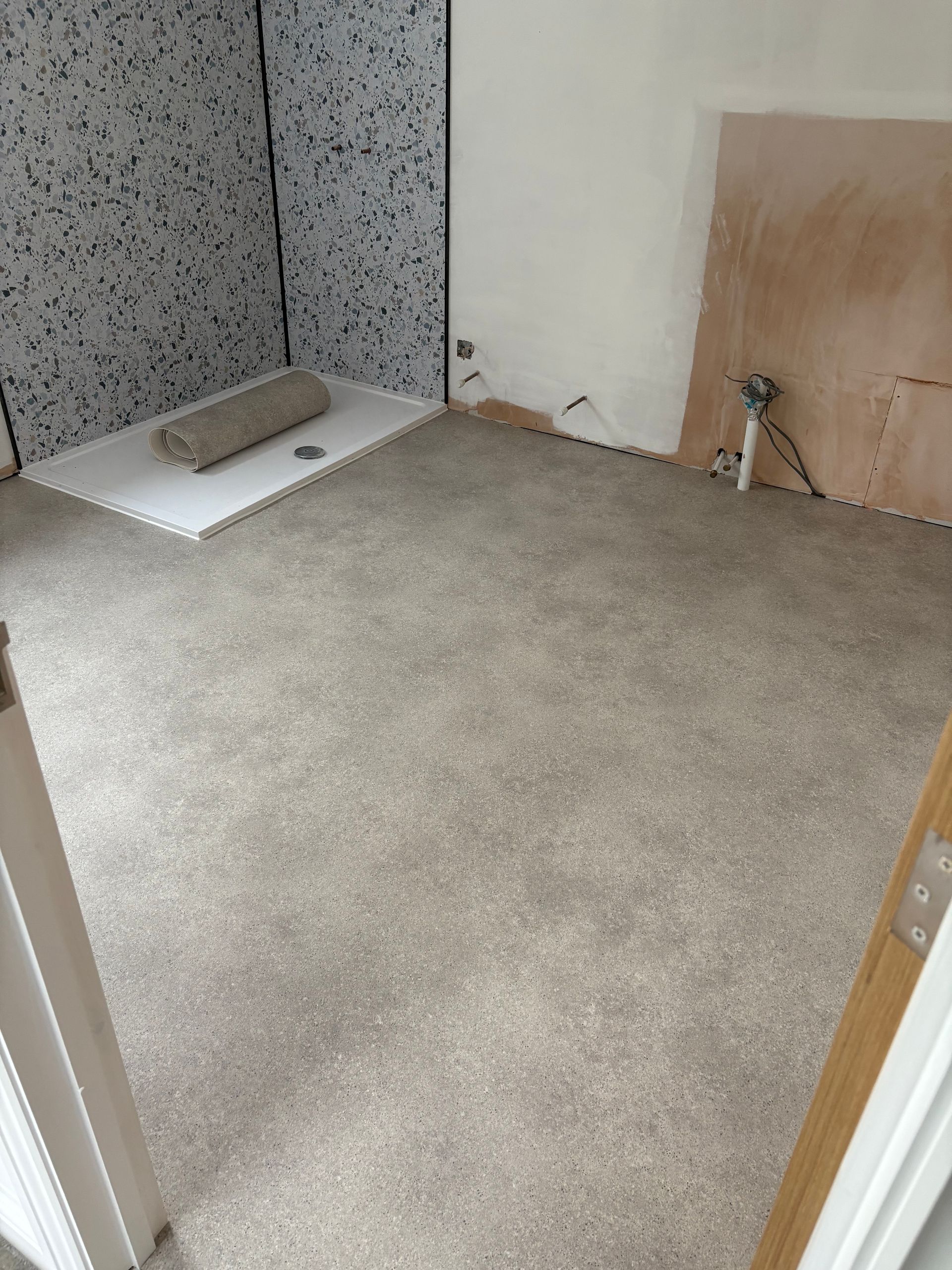 Latexing over dpm which smooths the subfllor ready for a new floor covering